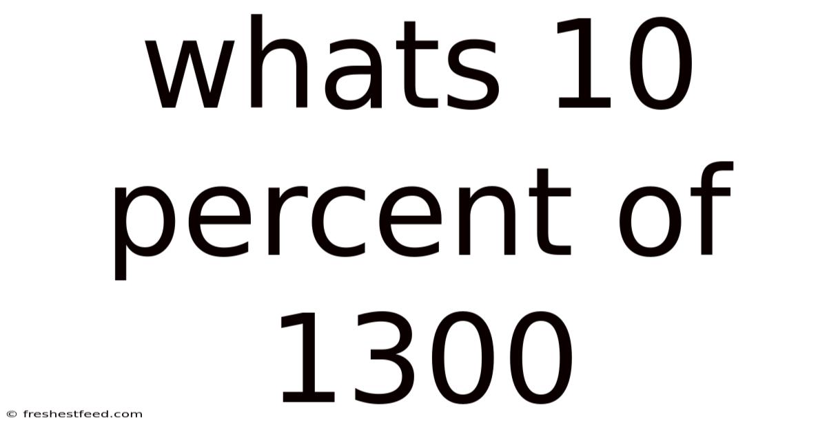 Finding 10 percent of 1300 might seem like a simple calculation, but it opens the door to understanding a fundamental concept in mathematics with widespread applications in various fields. Because of that, we'll get into the practical uses of percentage calculations, from everyday budgeting to complex financial analysis. This article will not only answer the question directly but also explore the underlying principles of percentages, different methods for calculating them, and real-world examples showcasing their importance. By the end, you'll not only know that 10% of 1300 is 130, but also possess a solid understanding of how to tackle similar percentage problems confidently.
